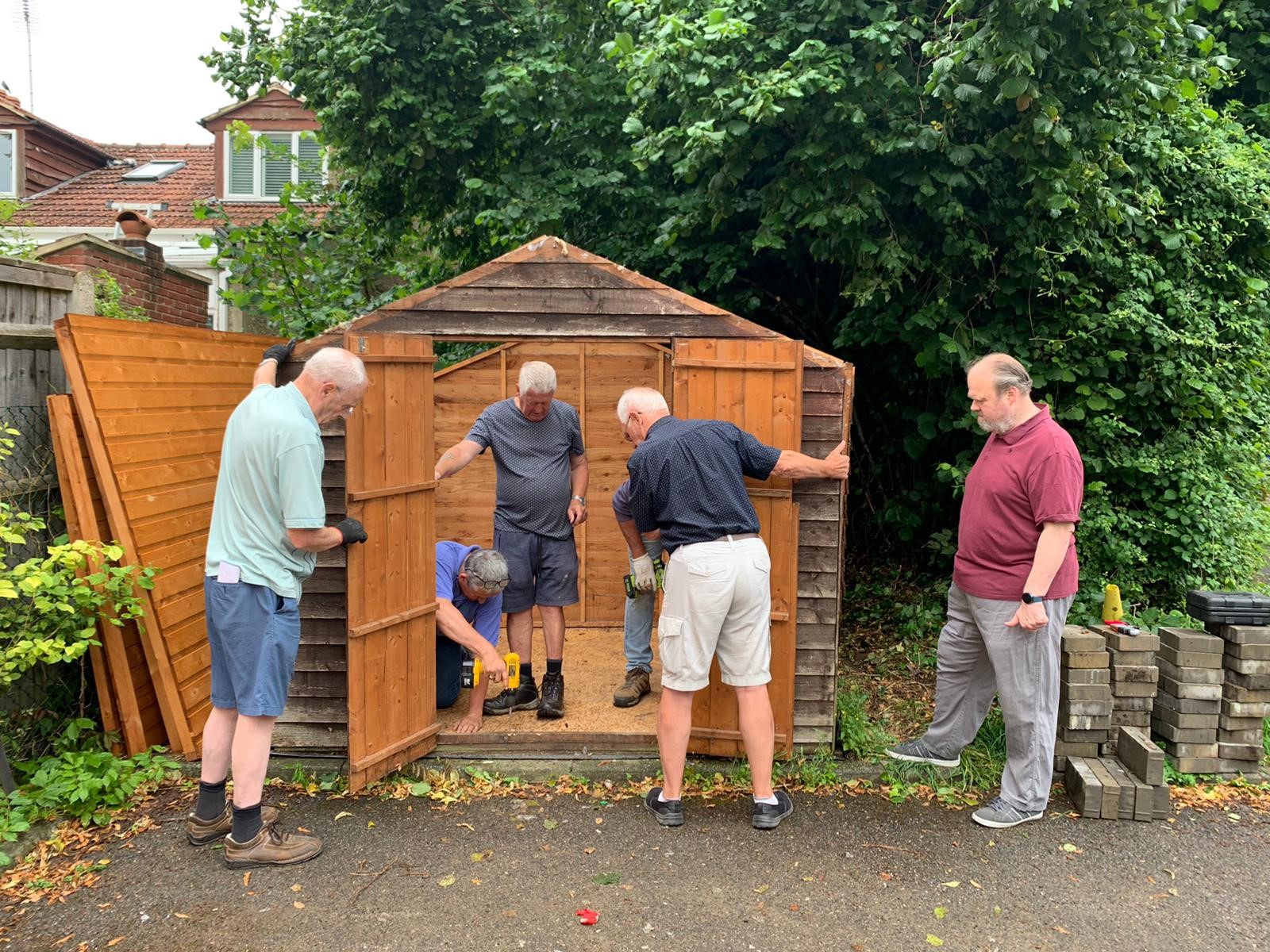 Danger – men at work! Erecting a new storage shed…